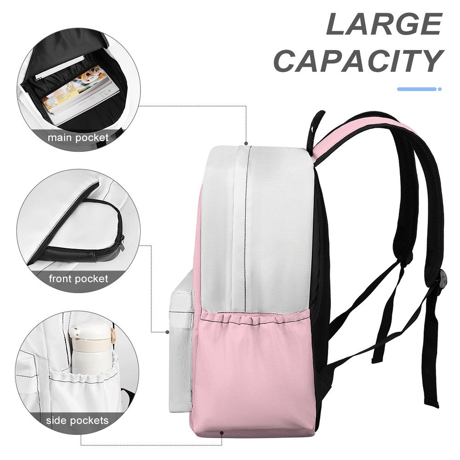 Die seitlichen Fächer bieten sicheren Stauraum für Wasserflaschen, Regenschirme oder andere Dinge, die schnell griffbereit sein sollen.